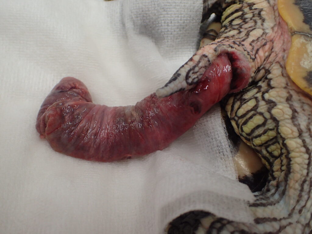 カメがなかなか産卵しない、お尻から臓器が出ている(卵詰まり、卵塞、卵管脱)
