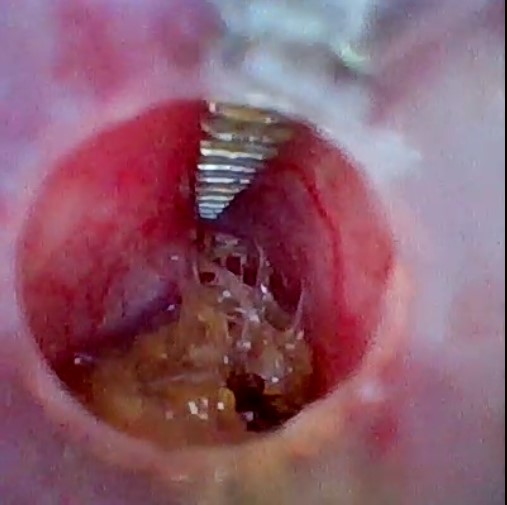 ハムスターの便が出ない、食欲がない(腸閉塞) 公開済み: 2021年12月2日更新: 2025年11月2日作成者: koizumi-nest 長毛のハムスターは、しばしば自身の被毛の摂取によって腸閉塞を生じます。 このような場合には、内科的治療によって異物の排泄を促進するか、手術などによって異物の摘出を行う必要があります。 内視鏡を用いて、長毛ゴールデンハムスターの結腸の毛球を摘出しているところ。 9日に及ぶ排便停止の治療のために当院で実施しました。 摘出された毛球。 腸閉そくの特徴的な症状として、急な排便停止があります。このような時には、すぐに病院に行き、適切な治療について獣医とよく相談をしましょう。