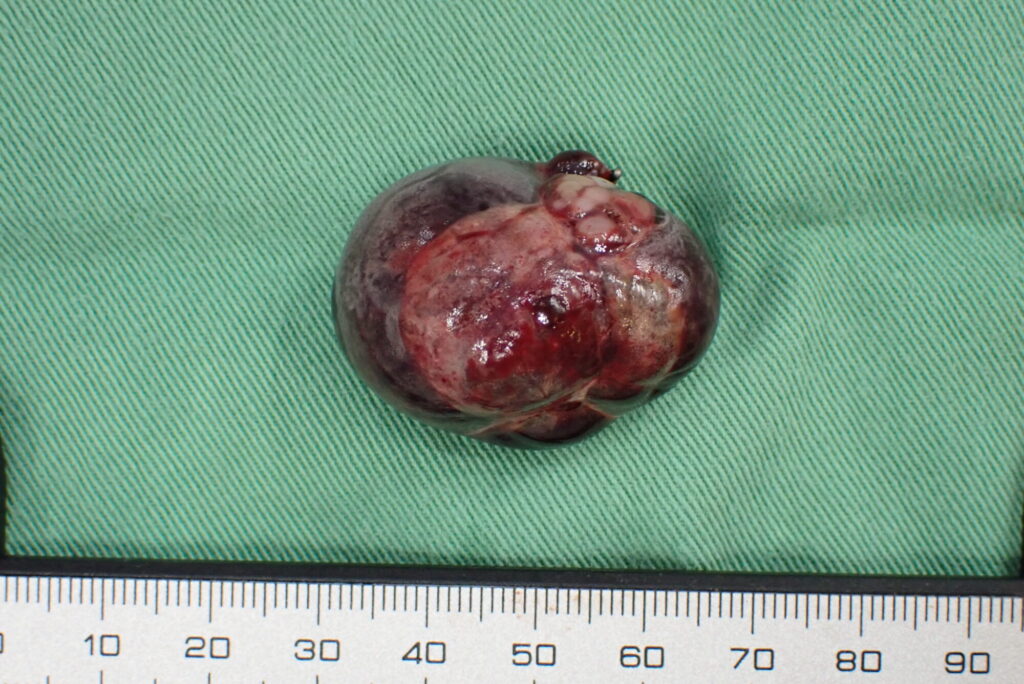 摘出された卵巣です。幸い、術後の経過は大変良好で、速やかに回復が見られました。