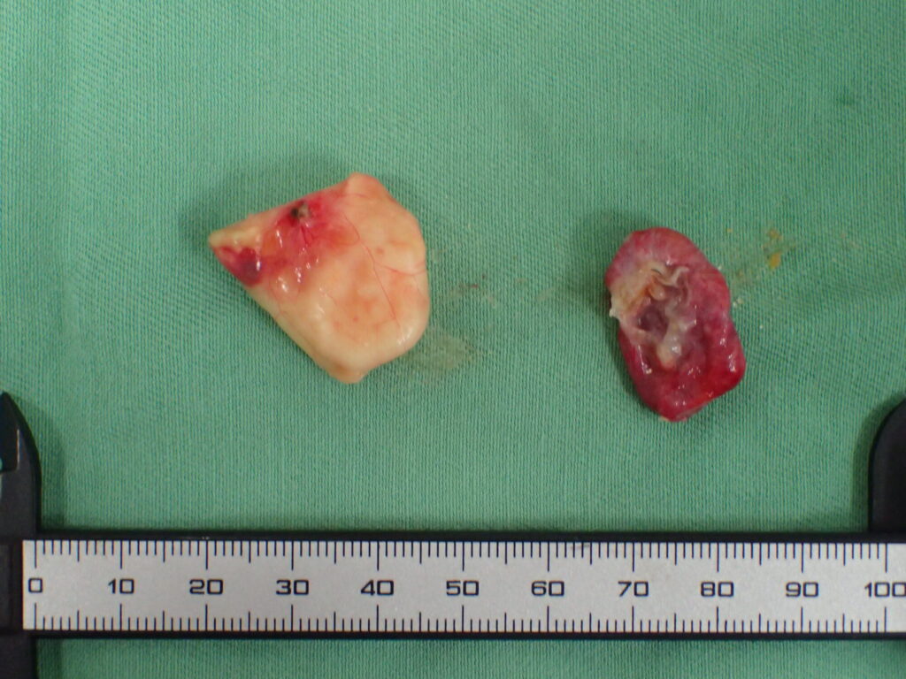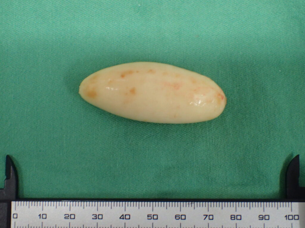 摘出された卵材。術後の経過は良好ですぐに食事を再開してくれました。